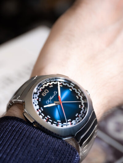 1920’lerin gösterişli otomotiv ve lokomotif tasarımlarına bir gönderme olan Streamliner koleksiyonu, H. Moser & Cie.’nin ünlü olduğu minimalizm ve çağdaş zarafetin kodlarını birleştiriyor. Başlangıçta entegre çelik bileziğe kadar tasarlanan bağımsız bağlantıların ve yastık şeklindeki kasanın her ayrıntısı, paslanmaz çeliğin güzelliğini ve dayanıklılığını keşfetmek için titizlikle tamamlandı. 12 ATM su geçirmezliğe sahip olan Streamliner, estetik olduğu kadar çok yönlü ve ergonomiktir.