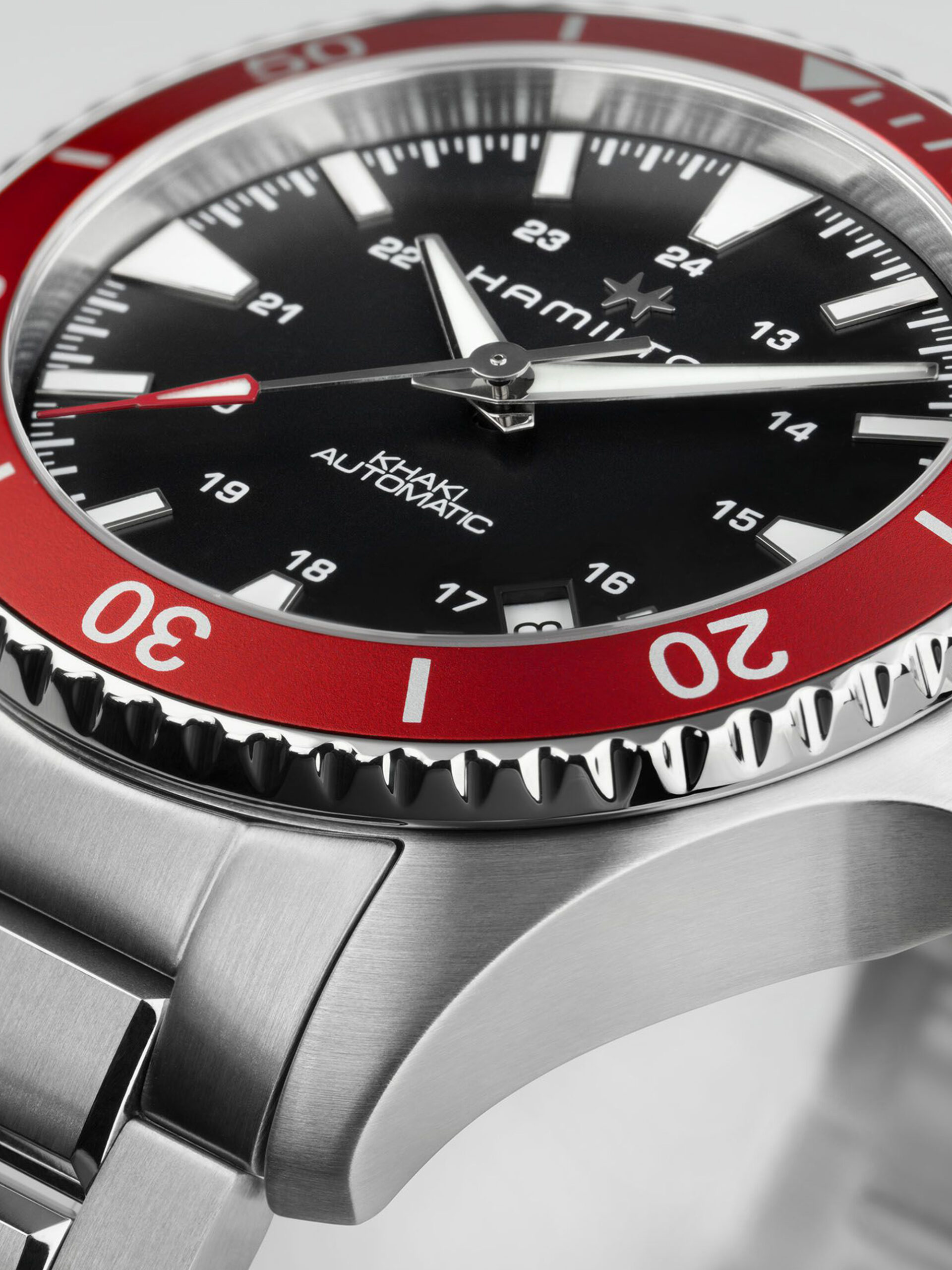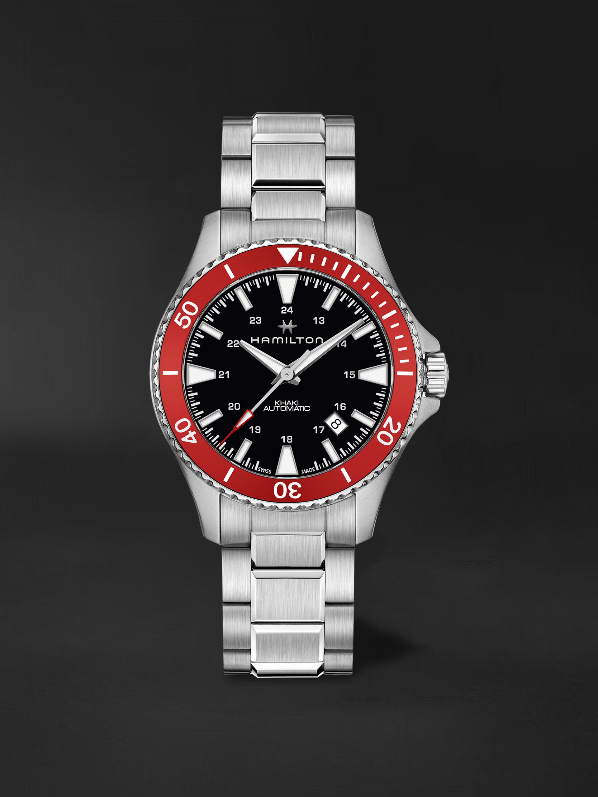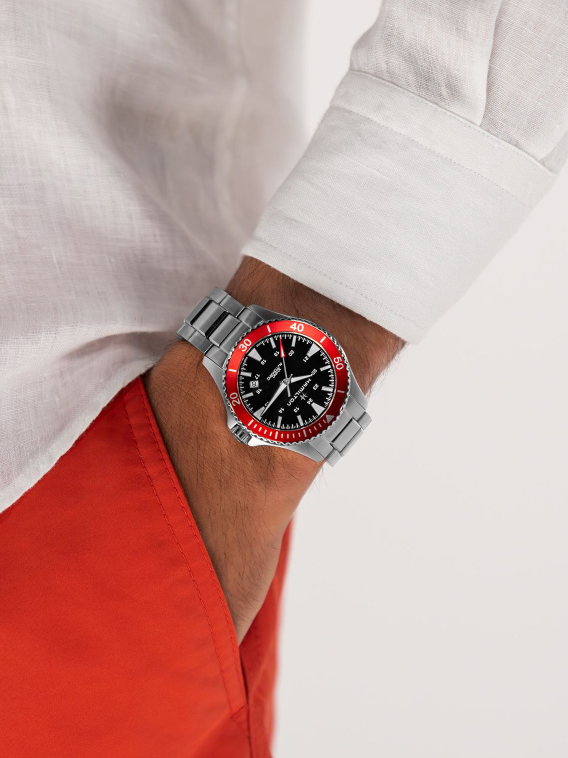 Denizcilik dünyasından esinlenilen parlak kırmızı, akla alev kırmızısı okyanus kurtarma ekiplerini ve yelkenli teknelerin sol tarafını (iskele tarafı) getiriyor. H-10 otomatik mekanizmamızla çalışan bu saat, hem stili hem de performansı takdir edenler için mükemmel bir seçim.