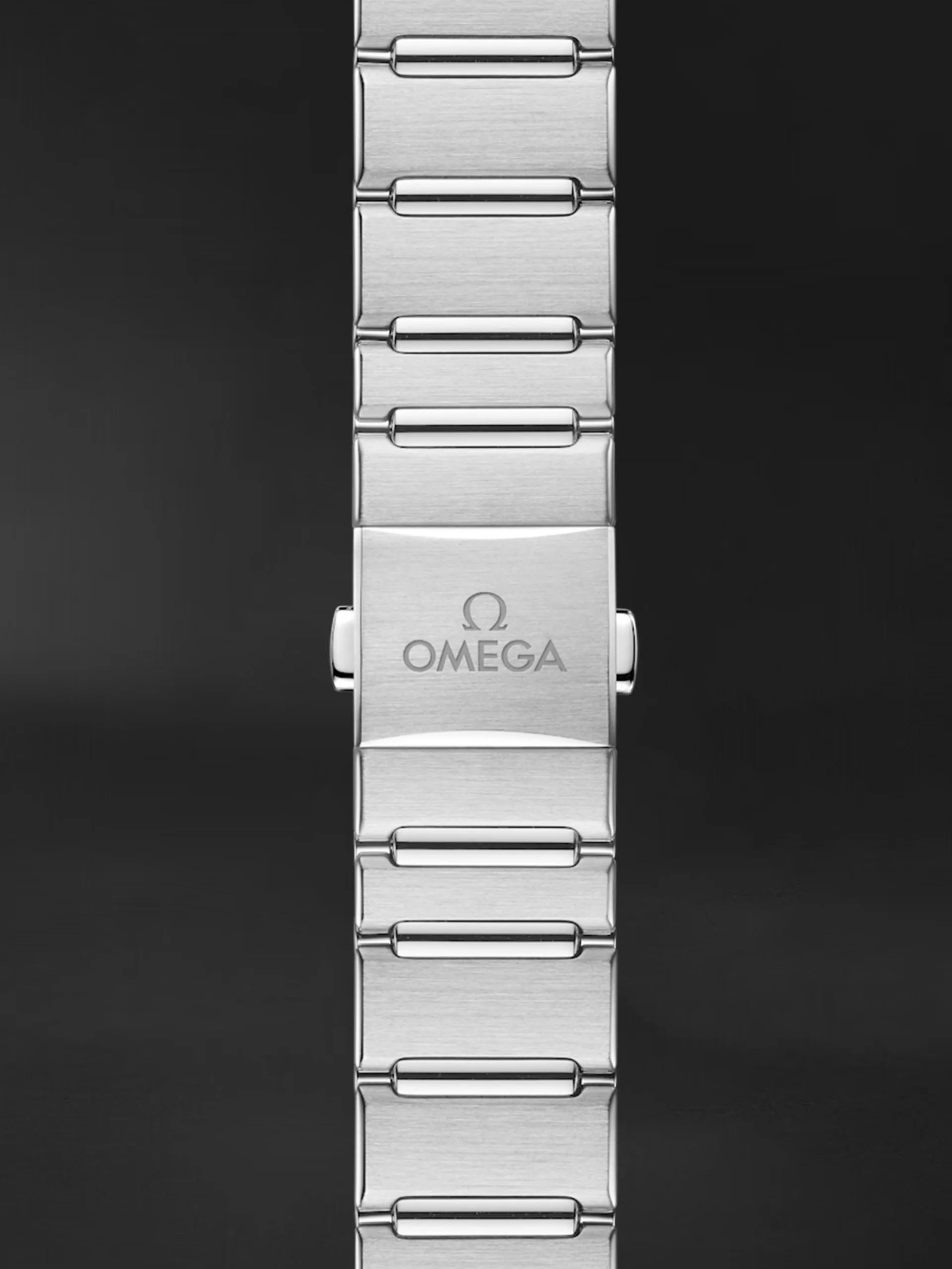 OMEGA Constellation’ın dramatik ve kalıcı tasarımı, ünlü yarım ayları, kasa üzerindeki “pençeleri” ve tek halkalı bileziği ile karakterize edilir. Bu 29 mm paslanmaz çelik model, elmas döşeli bir çerçeveye, ipek benzeri desenli beyaz gümüş kadrana, elmas saat imlerine ve saat 6 konumunda bir tarih penceresine sahiptir. İbreler, OMEGA logosu, Constellation yıldızı ve pırlanta tutucular 18 ayar beyaz altındır. Referans: 13115292052001